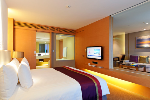 Zimmerausstattung: regulierbare Klimaanlage, Minibar, Safe, Kaffee- und Teezubereitungsset, iPod-Dockingstation, IP-Telefon, 42''-LCD-TV, High Speed-WLAN Internetzugang, IPTV und Apple-System via TV mit einer gigantischen Auswahl an Musik- und TV-Kanälen sowie schnellem Internetzugang.