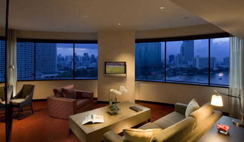 Die Family Suiten (67 qm) haben einen separaten Wohn- und Schlafbereich. Die Panoramic Executive Suiten (67 qm) garantieren einen atemberaubenden Ausblick auf Fluss und Skyline, haben ein offen konzipiertes Badezimmer mit separater Regendusche und einem Whirlpool. Ein Extrabett kann für alle Zimmertypen außer Executive Zimmer dazugebucht werden. Alle Zimmer verfügen über Flussblick.