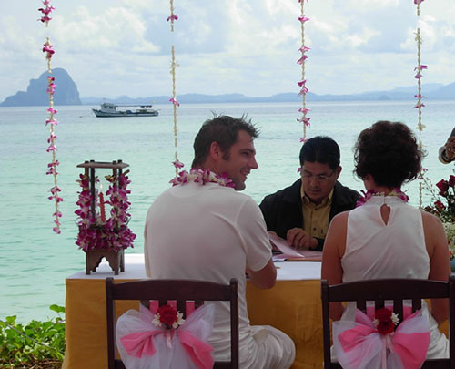 Liebe verliebte und verlobte Thailand-Freunde, der schönste Tag meines Lebens war der 12.05.04, meine Traumhochzeit auf Phi Phi Island. Die Gefühle, Emotionen und Eindrücke dieses Tages bleiben für immer in meinem Herzen. Einen schöneren Start ins Eheleben kann ich mir nicht vorstellen. Nun freue ich mich, vielen Menschen zu einem ebenso schönen Erlebnis verhelfen zu dürfen. Gerne bin ich Ihnen bei der Planung und Organisation Ihrer Hochzeit im Paradies behilflich. Wir bieten Hochzeitsarrangements in ausgewählten Hotels mit dem entsprechenden Ambiente und bestem Service an. Der wichtigste und schönste Tag in Ihrem Leben soll etwas Besonderes sein, genauso wie das Hotel für diesen Tag. Ich kennen alle „Hochzeits“-Resorts persönlich und finde sicherlich das Passende für Sie. Ihre Heidi Bleicher Reiseberaterin PS: Alle Bilder auf dieser Seite zeigen Thailand Tours Gäste die diesen schönen Tag ebenfalls schon erleben durften. | |