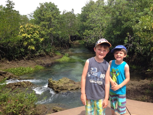 Das Wasser ist glasklar und kleine Holzplattformen laden zum Verweilen ein. Viele Fische und Vögel sind zu beobachten. Ein schöner Zeitvertreib.